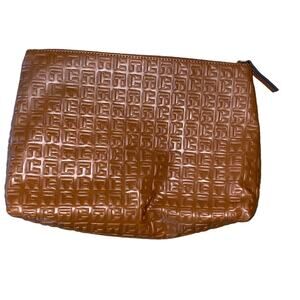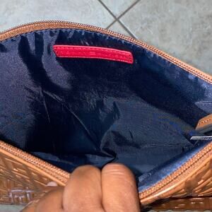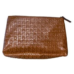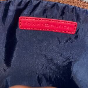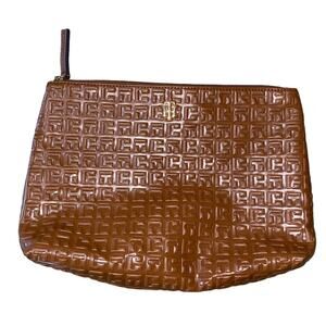Tommy Hilfiger Faux Leather TH Embossed Brown Gold Accent Zipped Pouch Bag 13"x8