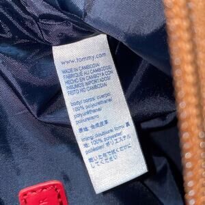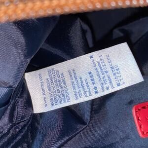 Tommy Hilfiger Faux Leather TH Raised Logo Embossed Peanut Butter Brown Gold Accent Zipped Pouch Bag 13"x8". Can be used alone, as a cosmetic bag or can be inserted into purse to organize items. Little to no signs of use.