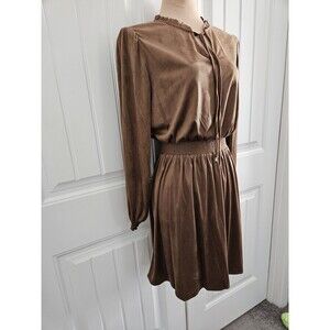Tommy Hilfiger Faux Suede Boho Dress Elastic Waist Size 8 NWT Bronze Color