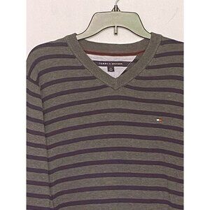 Tommy Hilfiger Flag Logo Striped Long Sleeves V-Neck Pima Cotton Sweater Men L
