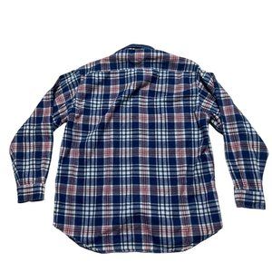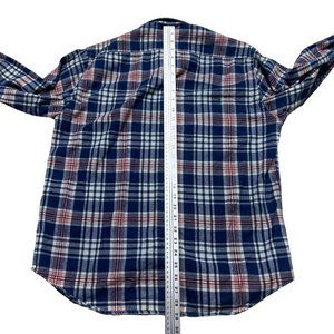 Tommy Hilfiger Flannel Shirt Mens Small Blue Plaid Denim Collar Long Sleeve