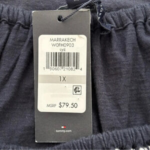 Tommy Hilfiger Marrakech Floral Embroidered Off The Shoulder Knit Top Navy 1X NWT