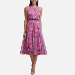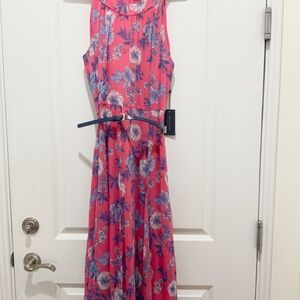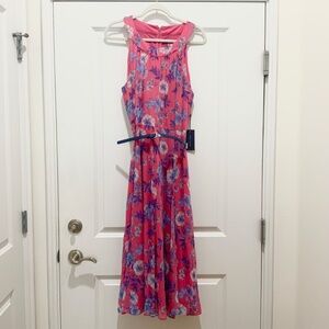 Tommy Hilfiger Floral Print Pink Blue Chiffon Sleeveless Summer Midi Dress 16