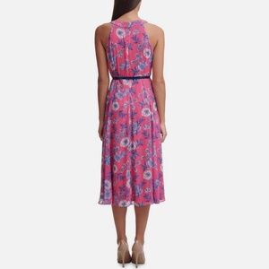Tommy Hilfiger Women's Floral Print Pink Blue White Chiffon Sleeveless Summer Midi Dress