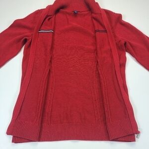 Tommy Hilfiger Full Zip Long Sleeve Sweater Jacket Cable Knit Red, Size Medium