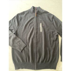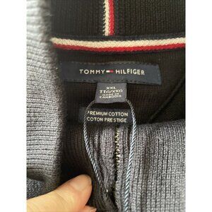 Tommy Hilfiger Full Zip Sweater Men's Black XXL Cotton Knit Ribbed Mock Neck