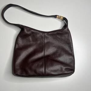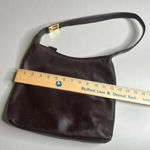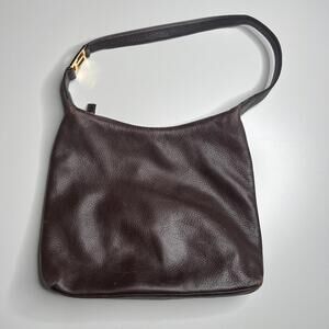 Authentic Tommy Hilfiger shoulder bag made of genuine brown leather. Features a classic minimalist design with a single shoulder strap and zippered interior pocket. Pre-owned condition with visible scuffs and wear consistent with use (shown in photos). Durable and timeless design, perfect for casual or business use.