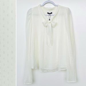 Tommy Hilfiger Georgette Shirt Tie-Neck Swiss Dot Textured Long Sleeve Pin-tuck