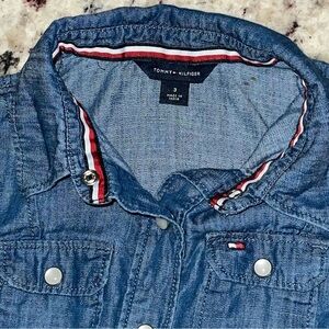 Tommy Hilfiger Girls Chambray Shirt Dress Size 3 Pearl Snap Toddler Denim Baby