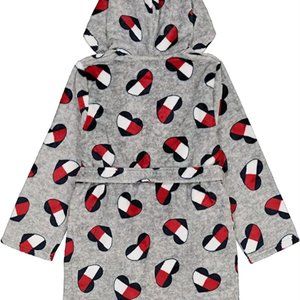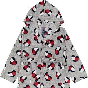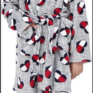 Tommy Hilfiger Girls Plush Robe Gray W/ Hearts Size S 6-7 NEW