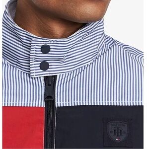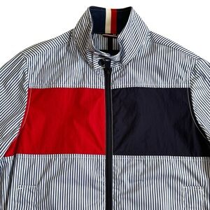 Tommy Hilfiger Gleason Barracuda Men’s Striped Colorblock Jacket Size S Blue Red