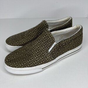 Tommy Hilfiger Gold Lebriz Canvas Slip On Loafers Womens Size 8 Casual Shoes