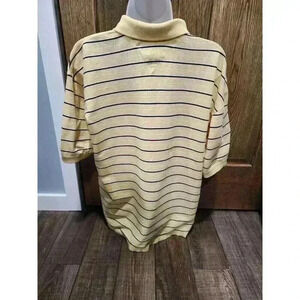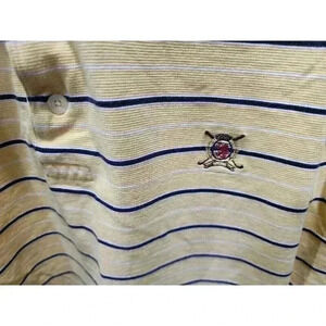 Elevate your golf game with this classic Tommy Hilfiger polo shirt. The shirt features a stylish striped pattern in yellow and navy blue, with a collared neckline and short sleeves. It is made from comfortable and durable cotton material, ensuring that it will keep you cool and comfortable during your game.