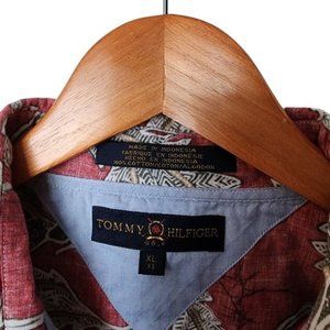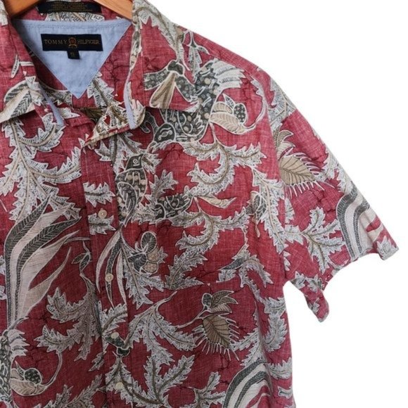 Tommy Hilfiger Golf Red Floral Hawaiian Style Button Up Men's XL Cotton