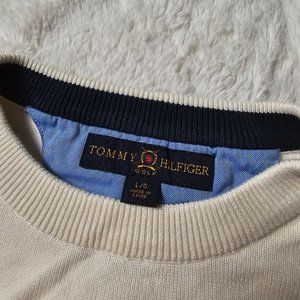 Tommy Hilfiger Golf White Knit Cotton Crew Neck Pullover Sweater L