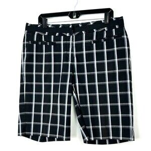 Tommy Hilfiger Golf Women Sz 12 Black Madras Plaid Bermuda Shorts Cotton Casual