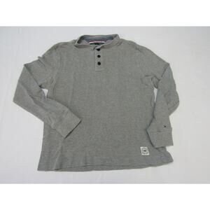 Tommy Hilfiger Gray Waffle Knit 3/4 Button Shirt Men's Small Coastal Layer