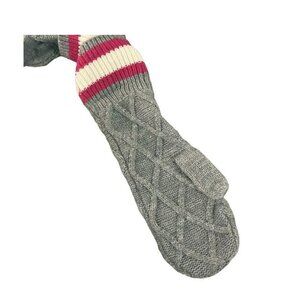 Tommy Hilfiger Gray/Dark Pink Badge Logo Knit Mittens Womens Designer NWT OS