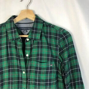 Tommy Hilfiger Green & Blue Square Plaid Long Sleeve Button Down S