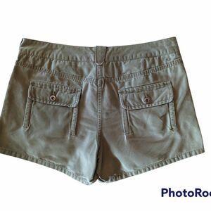 Tommy Hilfiger Green Flat Front Shorts, Size 8. Two front pockets and two back pockets. One button and zipper closure with belt loops. Slightly distressed look. Soft material, 100% cotton. Excellent condition.