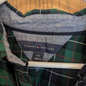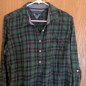 Tommy Hilfiger Green Plaid Half Button Down RollUp Sleeves Shirt-Women's Size L
