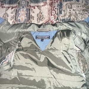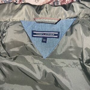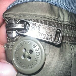 Olive green jacket with branded zipper and button. Classic Tommy Hilfiger style. Smoke free home. Excellent condition