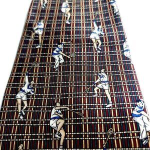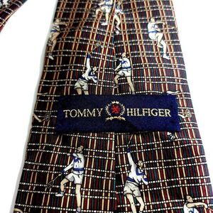 Tommy Hilfiger Green Red Tan Tennis Print Short Wide Silk Tie
