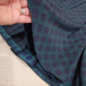 Tommy Hilfiger Green and Blue Polka Dot Midi flowy Skirt with Sash Toe Size Larg