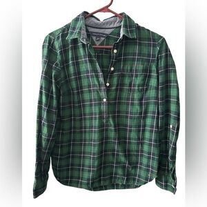 Tommy Hilfiger Green plaid women's partial button-down long sleeve shirt size Small