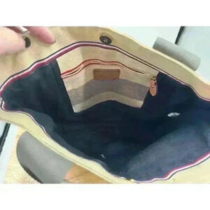 Elevate your beach style with this Tommy Hilfiger canvas shoulder tote! Featuring a chic grey and blue color scheme, this spacious tote is perfect for carrying all your essentials for a day at the beach or a casual outing.