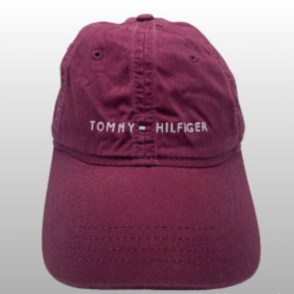 Tommy Hilfiger Hat Cap Strap Back Adult Mens Womens Burgundy Red Cotton Stitched
