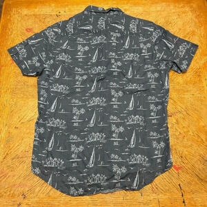 Tommy Hilfiger Hawaiian Sail Boat Shirt Mens Large Grey Custom Fit Button Up