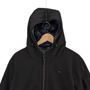 Tommy Hilfiger Hooded Bomber Jacket Mens Black Soft Shell Full Zip Lined Size M