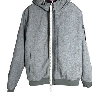 Tommy Hilfiger Hooded Bomber Jacket w/ Bib Mens Large Gray Soft Shell Filled