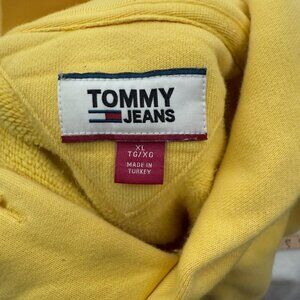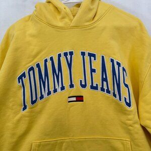Tommy Hilfiger Hoodie Mens XL Yellow Logo Spell Out Embroidered Pullover