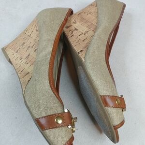 Tommy Hilfiger Horse Bit Beige Canvas, Cork Wedge Shoes Size 9.5 Peep Toe. Condition is Pre-owned. Shipped with USPS Priority Mail.126pem
