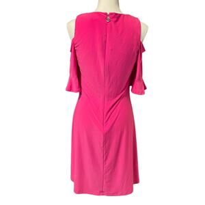Tommy Hilfiger Hot Pink Ruffled Sleeve Cut Shoulder Body Con Knee Length Dress