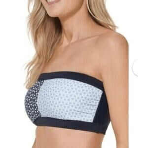 Tommy Hilfiger Iconic Colorblock Bandeau Bikini Top Monogram Sky Captain Blue XS NWT