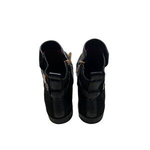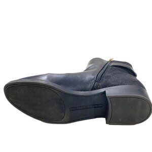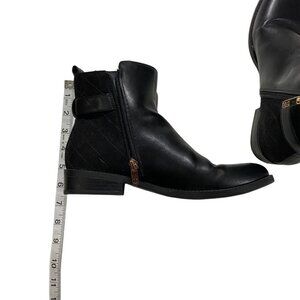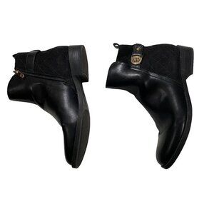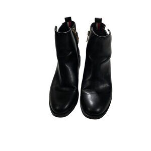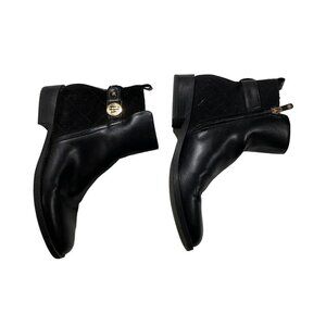 Tommy Hilfiger Isleen Women’s Black Mixed Media Vegan Leather / Quilted Fabric Ankle Bootie Boot Size 7.5M Shaft Height 5.25” Heel 1”. These booties are preowned, super clean, and in very good condition.