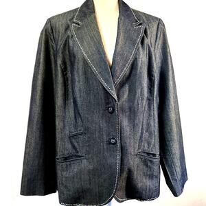 Tommy Hilfiger Jacket Denim Look Size 14 Lined Decorative Threading 3 Pockets