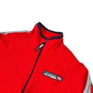 Tommy Hilfiger Jacket Women Large Red Full Zip Fleece Vintage 90s/00
