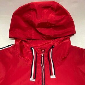 Tommy Hilfiger Jacket Women's XL Crimson Red Hooded Full Zip Windbreaker Coat EC