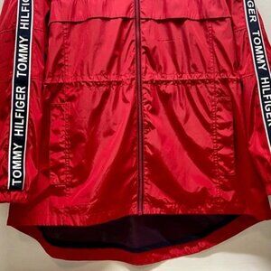 Tommy Hilfiger Hooded Windbreaker Women's XL Crimson Red Full Zip Hooded
