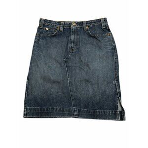 Tommy Hilfiger Jean Pencil Skirt Side Slit Distressed Medium Wash Womens 6 Logo