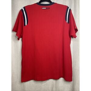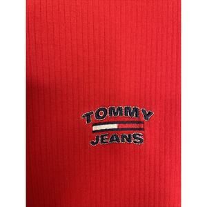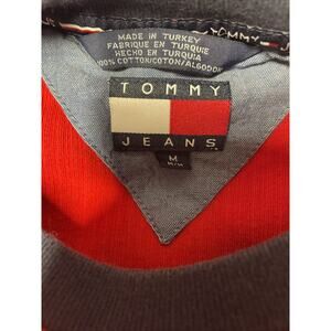 Measures 21” P2P and 25” long. There is one small spot - see photos. The Tommy Hilfiger Jeans Flag Red 2000s T-Shirt in size Medium is a vintage piece perfect for those who appreciate hip hop and cyber skater styles. Made of cotton with a crew neckline and short sleeves, this T-shirt embodies the brand's Tommy Hilfiger Tommy Jeans product line. The bold red color and iconic Tommy Hilfiger branding make it a standout piece for any wardrobe, suitable for all seasons. Made in Turkey, this T-shirt is a must-have for fans of Y2K fashion and vintage streetwear.