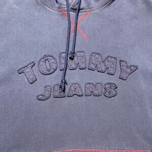 Tommy Hilfiger Jeans Hoodie Navy Blue Red Spell-Out Basic Skater Style Sweatshirt