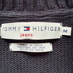 Tommy Hilfiger Jeans M Navy Blue Cotton Cable Knit Full Zip Cardigan Sweater