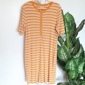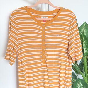 Tommy Hilfiger Jeans Mustard Yellow Striped Ribbed Henley T-Shirt Dress Size XL