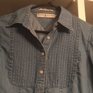 Tommy Hilfiger Jeans blouse in size M with cute chest ruffle detail. Has three bottoms on the sleeves. Barely worn