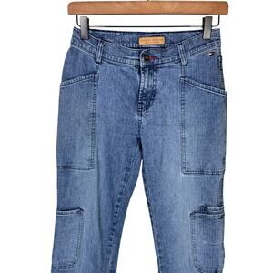 Tommy Hilfiger Juniors Y2K Low Rise Flared Wide Leg Cargo Pocket Jeans